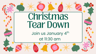 We are getting ready for the new year, and that means cleaning up after Christmas. We are looking for volunteers to assist with taking down Christmas decorations after the...