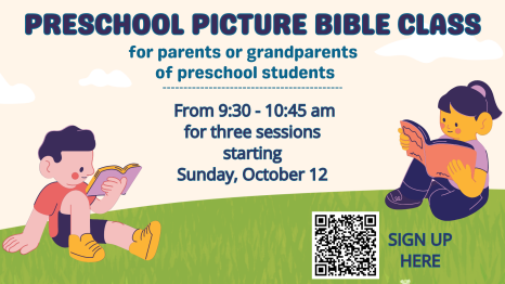 Preschool and Kindergarten families are invited to join us from 9:30am - 10:45am in the Children’s Center on October 12th, 19th & 26th. CLICK HERE to sign up!